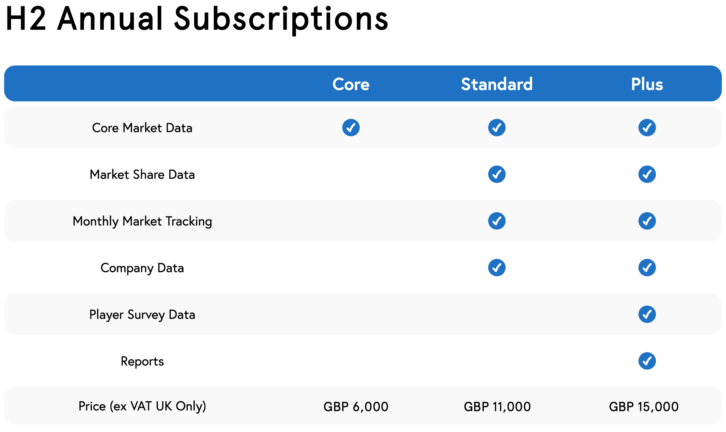 The H2 Annual Subscription provides access for your whole organisation worldwide with an unlimited number of users.